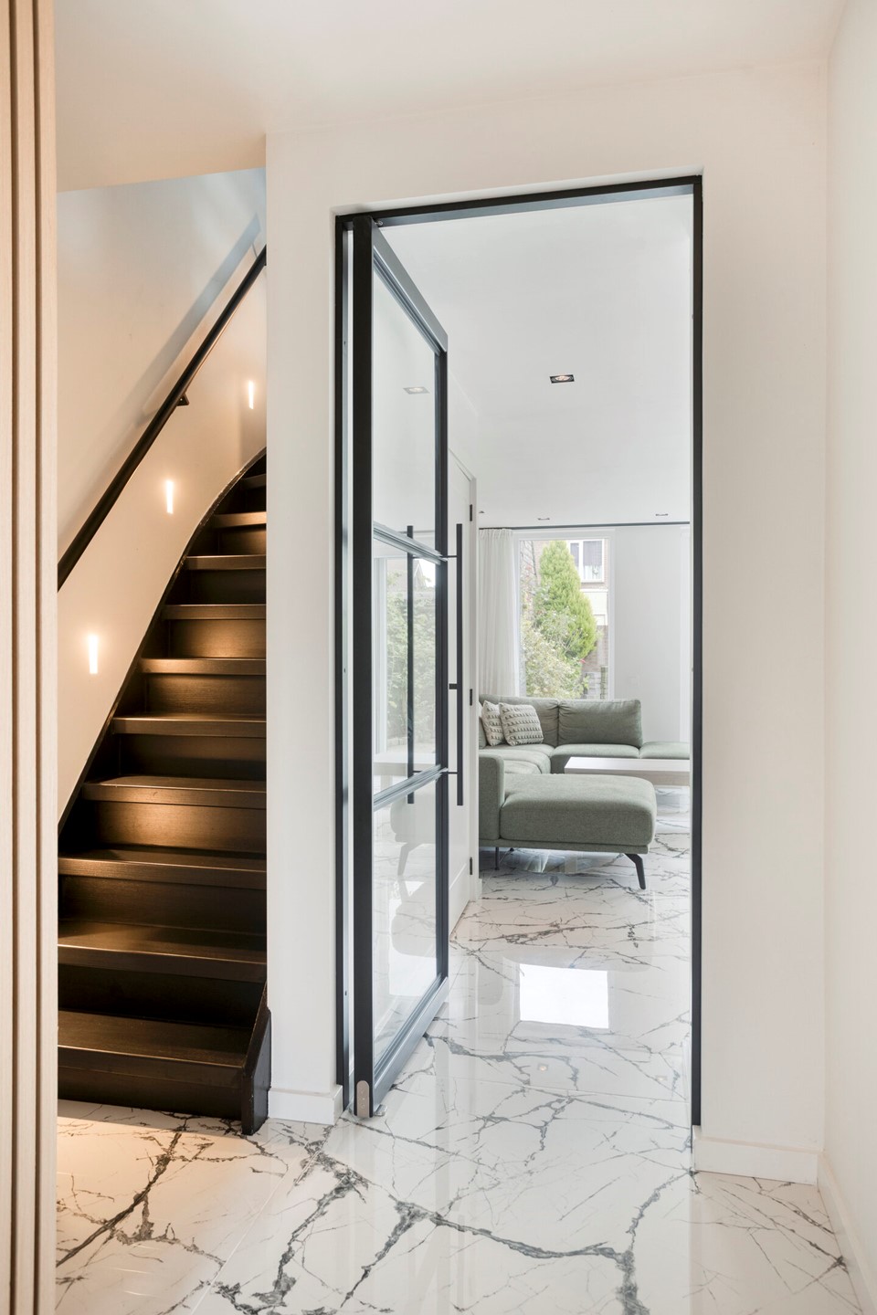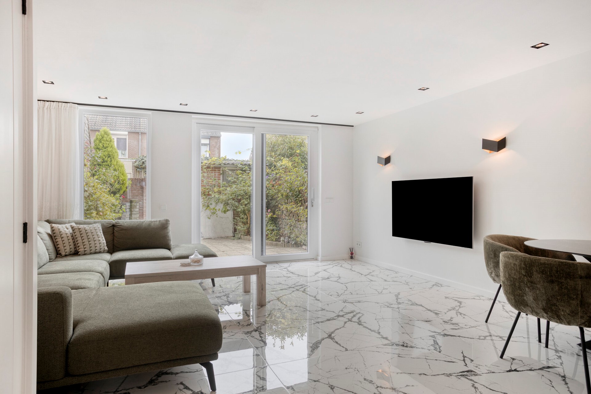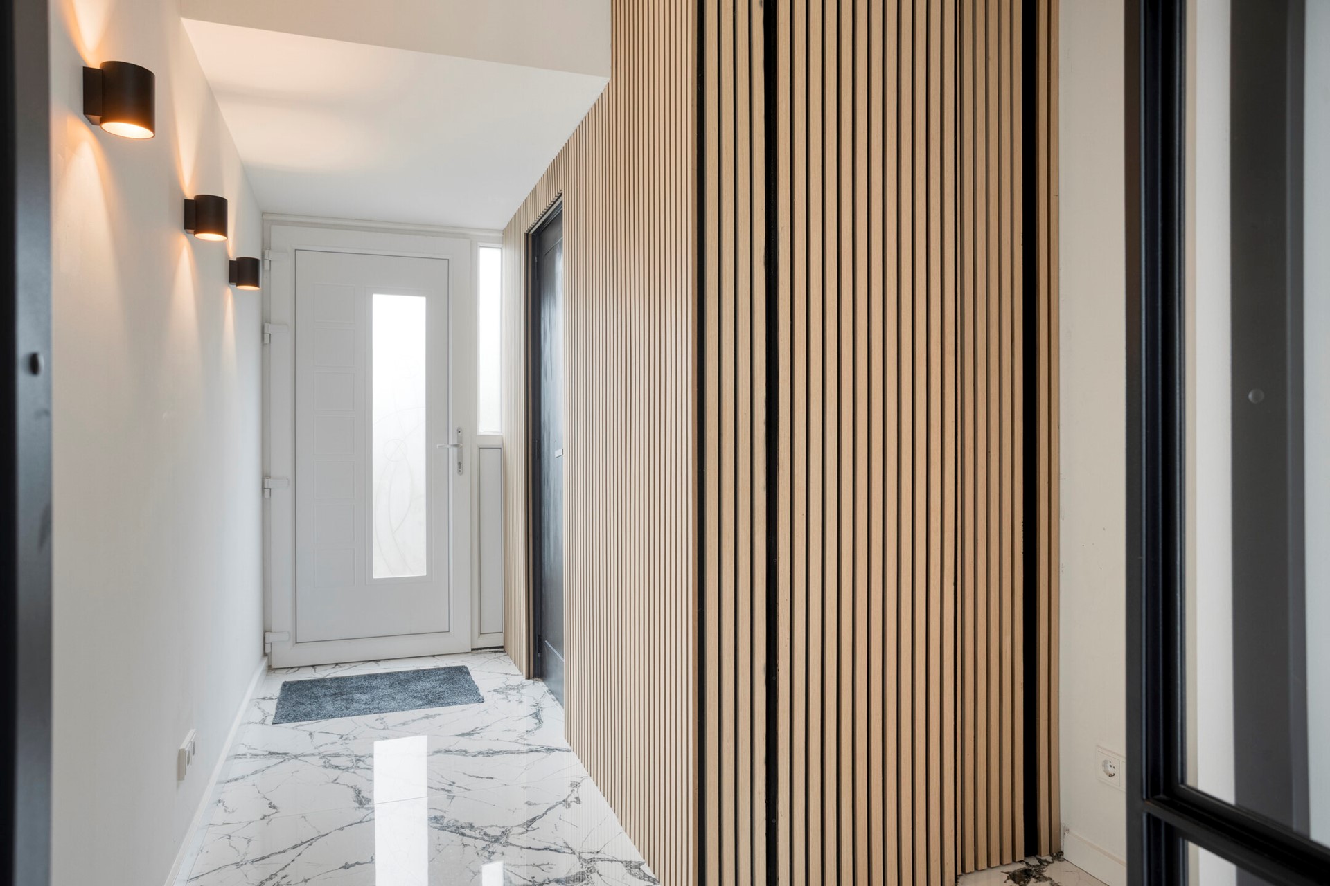 Zodra u binnenstapt, merkt u direct dat deze woning tot in de puntjes is afgewerkt. Via de hal, voorzien van stijlvolle wandspots en wandpanelen, treft u de vernieuwde meterkast (3-fase) fraai verborgen in de wand, de toiletruimte (volledig betegeld met fonteintje) en de trapopgang, eveneens verlicht met wandspots. Vervolgens komt u in de lichte, stijlvol afgewerkte woonkamer met directe verbinding naar de tuin middels een schuifpui.