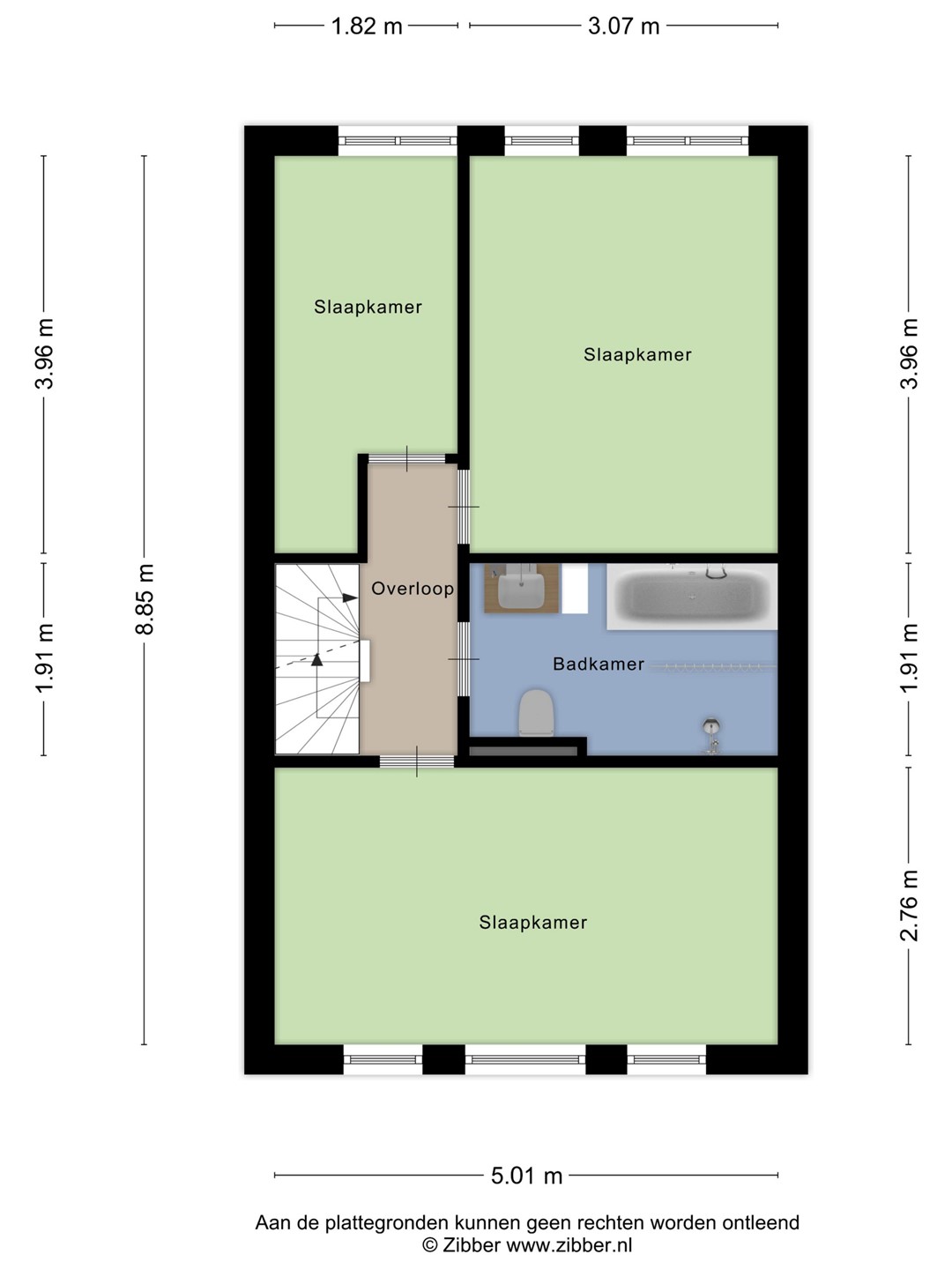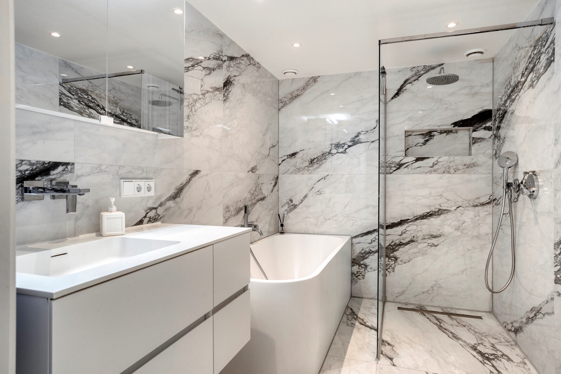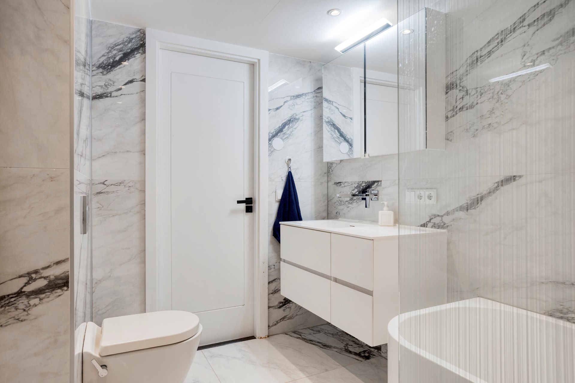De moderne afwerking van de begane grond zet zich voort op deze verdieping. Aan de voorzijde bevindt zich de royale masterbedroom en aan de achterzijde twee slaapkamers. Centraal op de verdieping treft u de luxe badkamer, compleet met ligbad, inloopdouche en toilet, uitgevoerd in een prachtige stijl. Net als beneden is ook deze verdieping volledig voorzien van vloerverwarming en hoogwaardig afgewerkt.