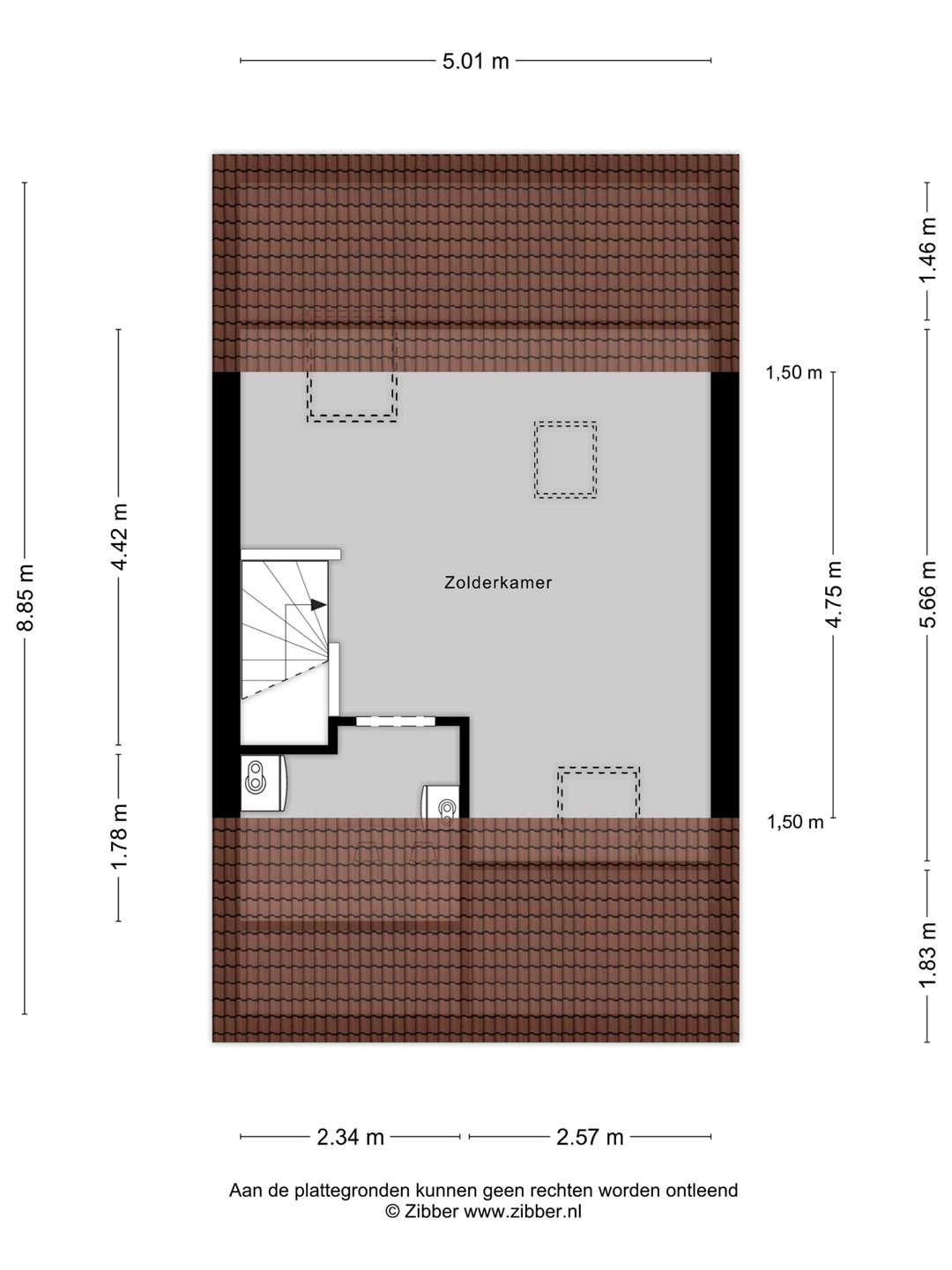 Zolder met vaste trap, 3 dakramen en aparte wasruimte;